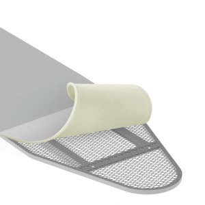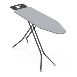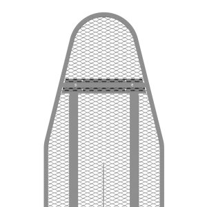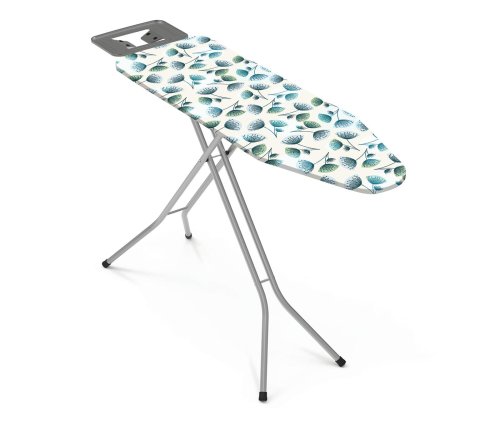 Žehlící prkno AQUA 21 o rozměrech 120 x 38 cm s kovovou odkládací plochou na žehličku. Konstrukce stříbrné barvy s nastavitelnou výškou od 66 do 92 cm.