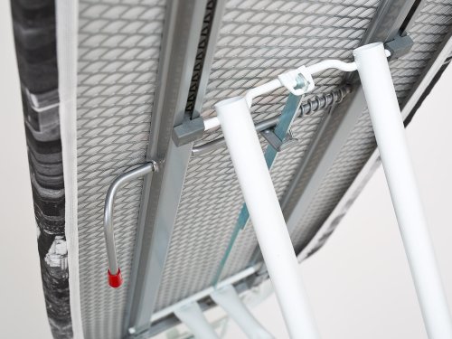 rozměry: 120 x 38 cm materiál: kovová deska Mash, potah 100 % bavlna podložka 8 mm průměr nohou: 22 mm síla materiálu: 0,7 mm nastavitelná výška: max. 94 cm hmotnost 4,4 kg elektrická zástrčka