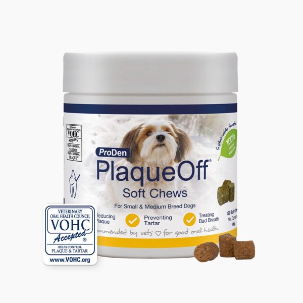 Nové žvýkací pastilky ProDen PlaqueOff® Soft Chews Dog kombinují výjimečné výhody ústní hygieny s neodolatelně lahodným zážitkem z pamlsku. Díky svému jedinečnému složení jsou tyto měkké žvýkačky navrženy tak, aby se vypořádaly s usazováním plaku a zubního kamene, osvěžily dech a podpořily zdravější zuby a dásně.