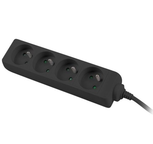 Praktický prodlužovací kabel se 4 zásuvkami, černá barva
