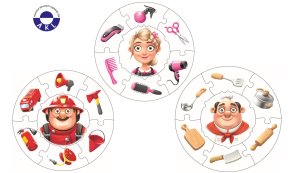 Puzzlika, nová značka puzzlů s moderním kreativním designem, přináší pro malé děti aktivní učení formou zábavné hry. Puzzle Profese 2 je edukativní hra, obsahující 21 pevných dílů, ze kterých při správném přiřazení a poskládání vzniknou 3 velké samostatné kulaté obrázky následujících profesí: hasič, kuchař a kadeřnice. Průměr celého složeného obrázku je 18 cm, samotná postava má průměr 9 cm. Naučné puzzle je skvělá hra pro malé děti, která u nich rozvíjí logické myšlení, představivost, kreativitu, jemnou motoriku a různé poznávací znalosti. Puzzle jsou vyrobeny z velice pevného vícevrstvého kartonu s lesklým povrchem. Karton byl vyroben z kvalitního, ekologicky pěstovaného dřeva. Puzzle je možné otřít vlhkým hadříkem. Doporučený věk od 3 let. Vyrobeno v Evropě.
