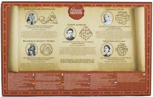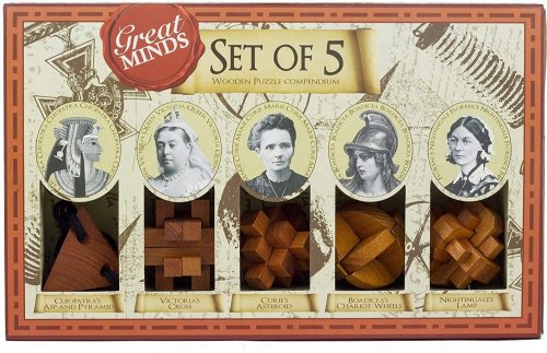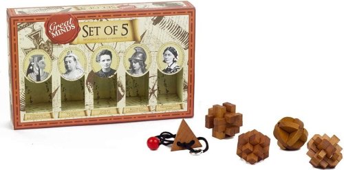 Great Minds: Tato oblíbená kolekce kvalitních dřevěných a kovových hlavolamů vzdává hold nejchytřejším a nejvlivnějším myslitelům z celého světa. Tato sada pěti elegantně zpracovaných hlavolamů vzdává hold slavným ženám, které ovlivnily svět. Každý hlavolam je inspirován jejich životem, symbolikou a odkazem. Dokážeš každý z nich rozebrat a znovu složit?