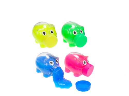Sliz je zábavná a žertovná hračka, se kterou si můžete hrát celý den. Nechej si svýma rukama protékat sliz. Hmota je umístěna v legrační plastové nádobě ve tvaru prasátka a zaujme také svými pestrými barvami. Dostupné jsou 4 barvy - modrá, růžová, žlutá, zelená. Vhodné pro děti od 3 let.