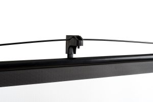 Promítací plocha má formát: 16:9 Úhlopříčka: 100" Rozměr (bílá plocha): 221 x 125 cm Rozměr tubusu: 235 x 7 cm Černé okraje: horní 3 cm, postranní 2,5 cm, dolní 23 cm Délka plátna po maximálním roztažení: 151 cm Maximální nastavitelná výška stativu: 71 cm
