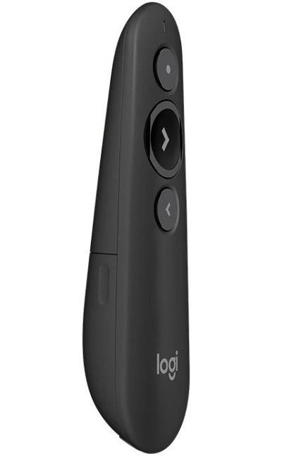 Nezaměnitelný tvar ovladače R500s se třemi tlačítky vám umožní procházet snímky prezentace snadno a s jistotou, aniž byste museli sledovat polohu svých prstů.