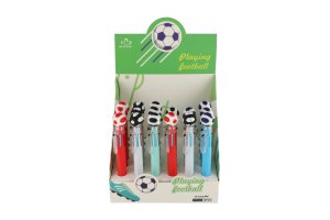 Nápaditá propiska s motivem fotbalu prostě baví! Propiska s fotbalovým míčem zkrátka nesmí chybět v žádném penálu ani v žádném dětském šuplíku. Uvnitř se ukrývá 6 barevných tuh, které lze libovolně měnit. Přepínání mezi barvami je velmi snadné, stačí stlačit novou barvu. S touto propiskou si děti užijí spoustu zábavy, kreslení je bude bavit, navíc ji mohou využít jak ve škole, tak doma. Rozměr pera: 16 cm