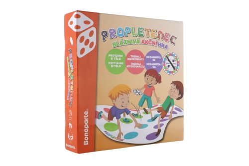Bláznivá akční hra, která velice vtipným způsobem trénuje koordinaci těla. Kdo se nejdéle udrží na nohou, nebo snad na rukou? Přesouvej ruce i nohy na určený barevný bod co nejrychleji. Poud se podložky dotkneš jinou částí těla, jsi ze hry venku. Obsahuje hrací podložku, hrací kolo a návod. Hra je určena pro 3 až 7 hráčů. Rozměry balení 28 x 27 x 6 cm. Vhodné pro děti od 5 let.