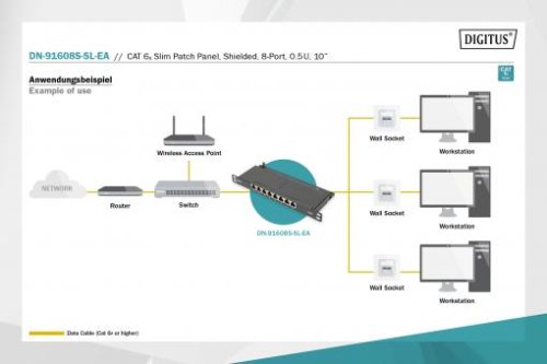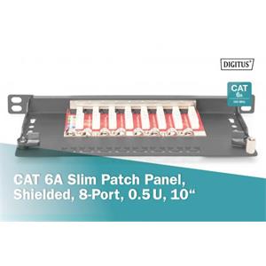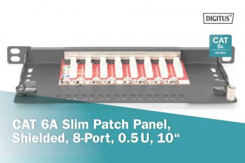 8portový propojovací panel DIGITUS® 0,5U nabízí vysokou hustotu. Vzhledem k tomu, že panel má výšku pouze 0,5 U, umožňuje prezentovat 16 portů na 1U (2 panely po 8 portech), které lze nainstalovat. Vyhovuje standardu 802.3at PoE + a standardu 802.3af PoE.