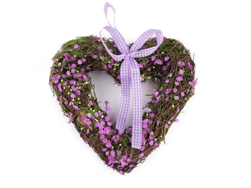 Proutěné srdce vynikne pověšené na dveřích, v oknech i na zdi. Svěží nádech mu dodávají drobné textilní okvětní lístky a umělý mech. Jelikož jsou srdíčka z přírodního materiálu, jejich velikost a hustota se může trochu lišit.