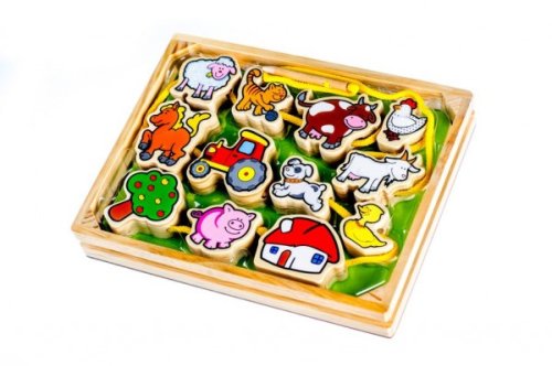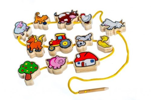 Kvalitní dřevěná provlékačka pro nejmenší učí děti poznávat tradiční česká zvířátka a jejich mláďátka. Pomáhá rozvíjet jemnou motoriku, soustředění, procvičuje zručnost a učí děti trpělivosti. Při navlékání mohou děti vyprávět příběhy o zvířátkách, učit se barvy ale také si s jednotlivými dílky hrát. Sada obsahuje 12 dřevěných dílků, dřevěnou jehlu, bavlněnou šňůrku a dřevěnou svorku. Veselé a barevné motivy zaujmou dětskou pozornost a jsou skvělou pomůckou pro učení i hru.
