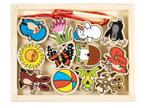 Dřevěné dílky s potiskem Krtka navlékáme na přiloženou šnůrku. Výrobek učí malé děti jemné motorice ruky, navlékání na šňůrku, vlastní kreativitě. V sadě 12 ks na navlékání a šňůrka. Velikost balení: 19 x 15 cm Vhodnét pro děti od 18ti měsíců