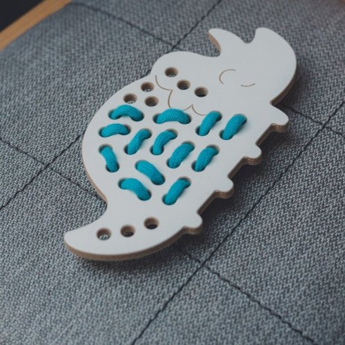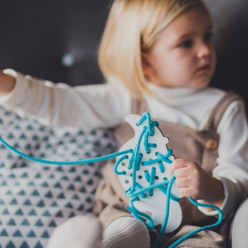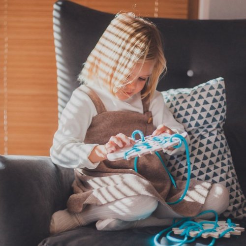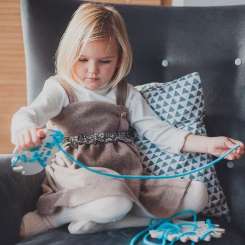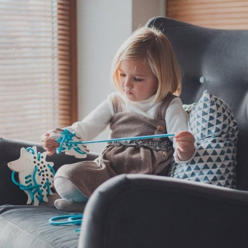 Dřevěná provlékací hračka rozvíjející kreativitu a představivost.