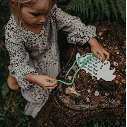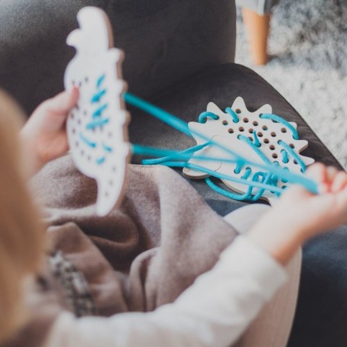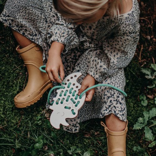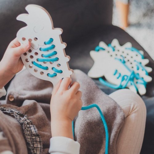 • dřevěná provlékací hračka pro rozvoj kreativity, fantazie a jemné motoriky