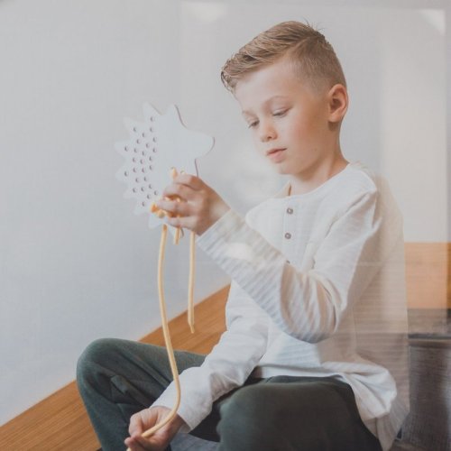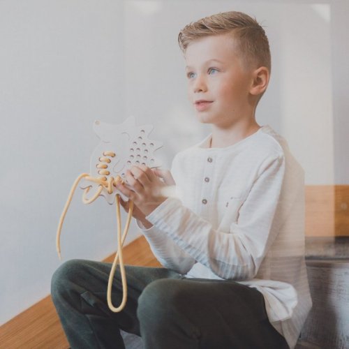 • dřevěná provlékací hračka pro rozvoj kreativity, fantazie a jemné motoriky
