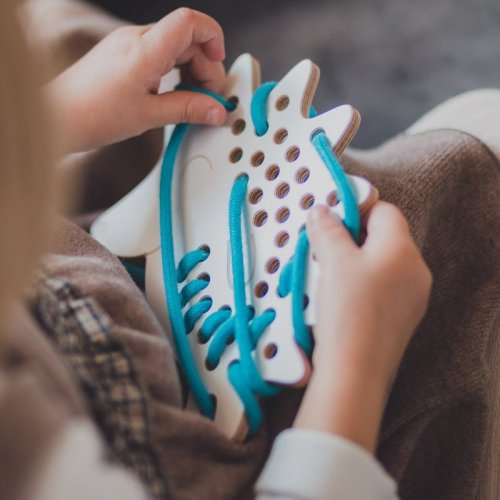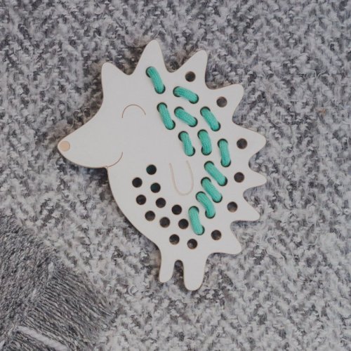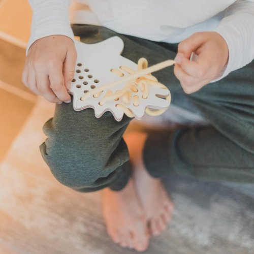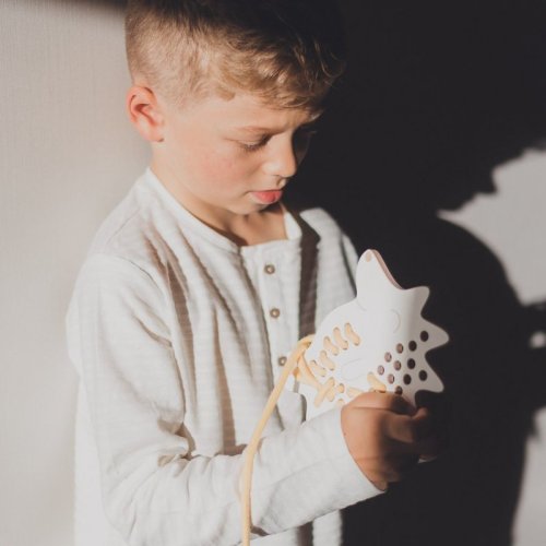 Dřevěná provlékací hračka rozvíjející kreativitu a představivost.
