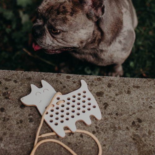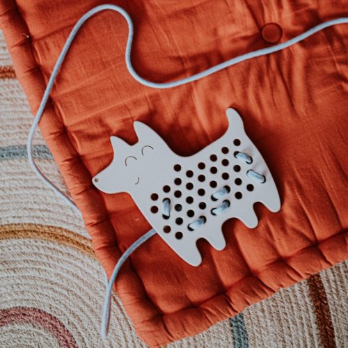 Dřevěná provlékací hračka rozvíjející kreativitu a představivost.