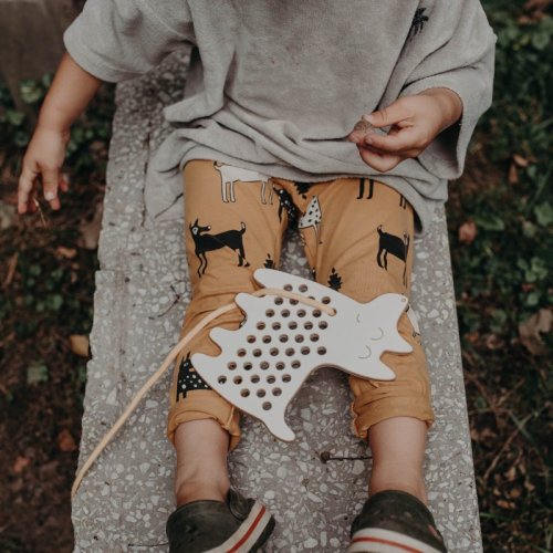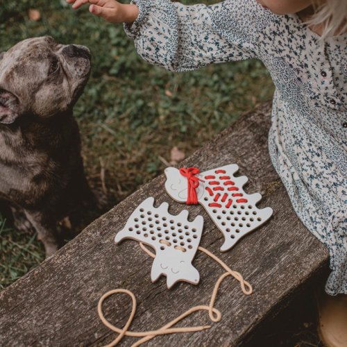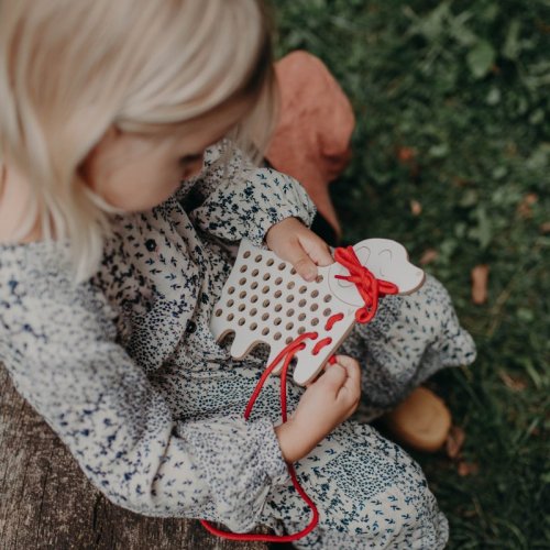 • dřevěná provlékací hračka pro rozvoj kreativity, fantazie a jemné motoriky