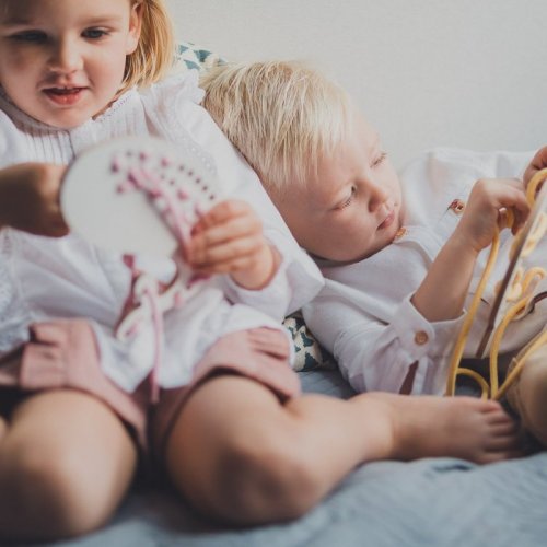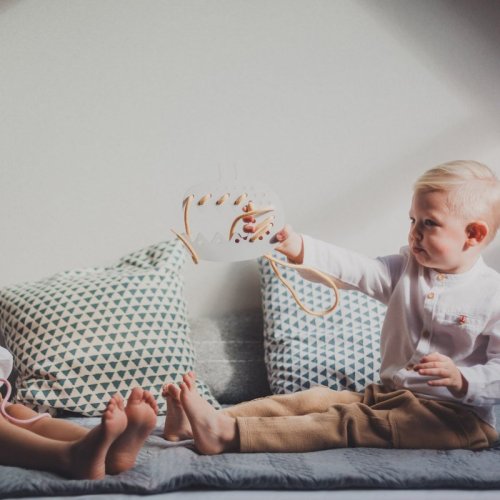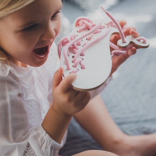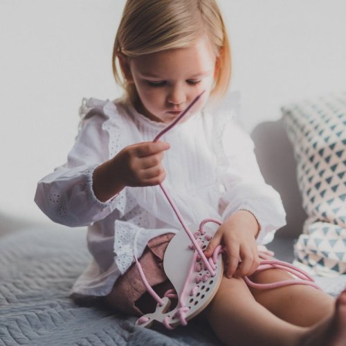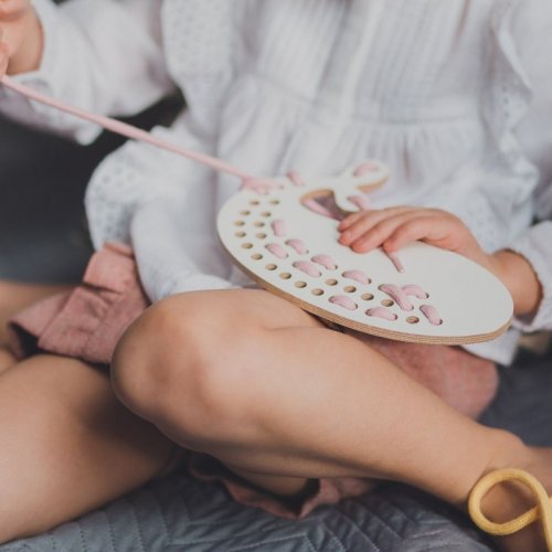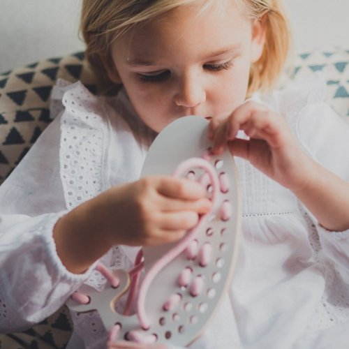 Dřevěná provlékací hračka rozvíjející kreativitu a představivost.