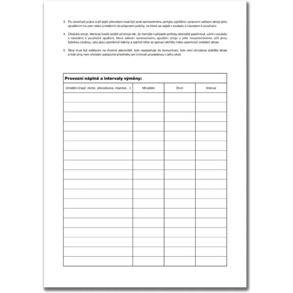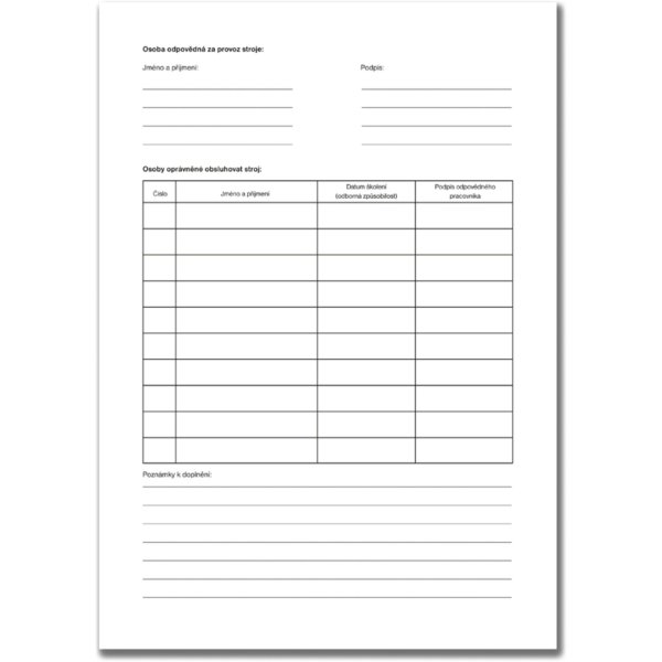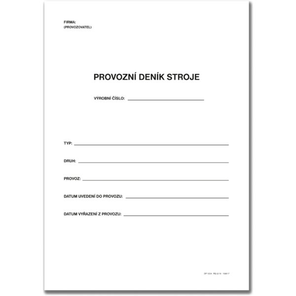 Nepropisující nečíslovaný provozní deník stroje Blok 22 listů Formát A4