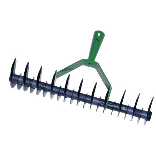 Tento oboustranný provzdušňovač slouží k vyhrabání mechu a provzdušňování na menších travních plochách a je také vhodný pro rozrušení substrátu před dosevem.