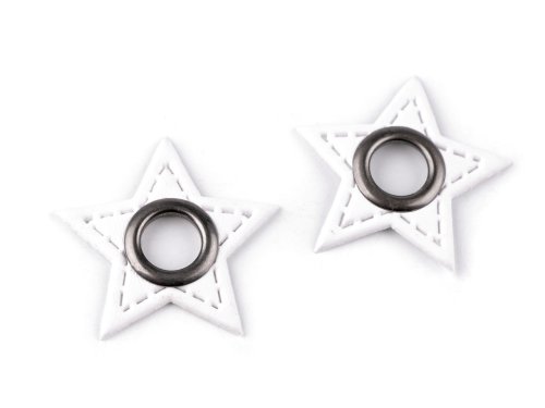Průchodka s koženkovou hvězdou k našití, průvlek 8 mm - bílá černý nikl (20 ks)