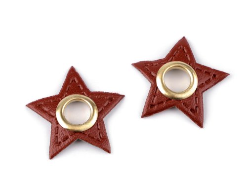 Průchodka s koženkovou hvězdou k našití, průvlek 8 mm - hnědá koňak zlatá (20 ks)