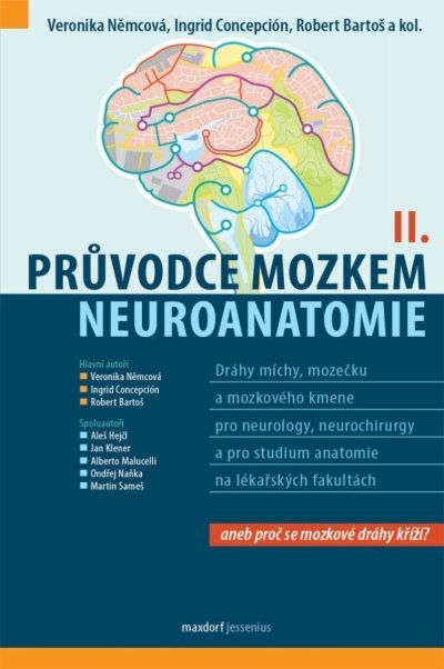 Průvodce mozkem II. díl navazuje na předchozí knihu, která již popsala anatomii drah mozkové hemisféry a kopíruje její formát. V první kapitole však poskytuje odpovědi na otázky o smyslu křížení mozkových drah a popisuje uspořádání nervových systémů živočišné říše, čímž může zaujmout i širší čtenářskou obec ve smyslu popularizace neurověd. V dalších kapitolách opět spojuje mikrofotografie anatomických preparátů se základy anatomie a funkce důležitých struktur - tentokrát mozkového kmene, míchy a mozečku. Vznikla opět v těsné spolupráci neurochirurgů a anatomů a svým cílem spojuje začínající (mediky) i pokročilé (neurology, neurochirurgy) neurovědce. Zcela mimořádná je kapitola detailně popisující a fotograficky dokumentující vnitřní disekční anatomii mozkového kmene metodou dle profesora Klinglera, jejíž autorkou je dr. Ingrid Concepción z Panamy a také atlas bezpečných vstupů do mozkového kmene i popis anatomie mozečkové hemisféry. Proto by neměla chybět v knihovně žádného neurochirurga, kterého jistě obohatí i kazuistiky operací nádorů, respektive kavernomů mozkového kmene i míchy, popsané zkušenými operatéry. Ti svůj text opět doprovázejí operačními fotografiemi a můžete se s nimi ponořit do světa, kde technická chyba v rozsahu zlomku milimetru znamená pro pacienta špatný výsledek a pro chirurga enormní frustraci. Poslední tři kapitoly shrnující anatomii míchy, mozkového kmene a mozečku jsou vhodné jak pro mediky k přípravě na zkoušku z anatomie či opakování neuroanatomie před zkouškami z fyziologie, neurologie a neurochirurgie, tak i pro začínající neurology, neurochirurgy a postgraduální studenty neurověd. Kniha je věnována památce našeho předního neuroanatoma - profesora MUDr. Pavla Petrovického, DrSc.