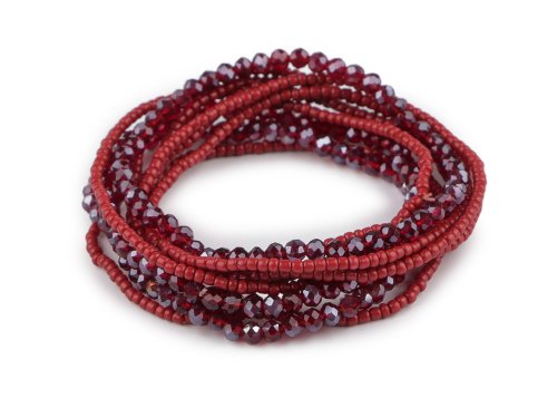 Pružné náramky z rokajlu a broušených korálků sada 10 ks - bordó sv.