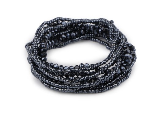 Pružné náramky z rokajlu a broušených korálků sada 10 ks - modrá temná