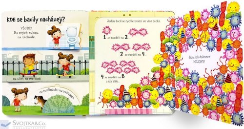 Jsou tak malinké, že je ani neuvidíš. A přece jsou všude kolem nás. Odklop okénka a zjisti, kde všude bacily žijí a jak se jim můžeš ubránit. Bakterie a bacily jsou všude kolem nás. Některé nám pomáhají, jiné ale způsobují nemoci. V bohatě ilustrované knížce s odklápěcími okénky zjistíš, kde všude bacily žijí, jak se šíří a jak se naše tělo může proti bacilům bránit.