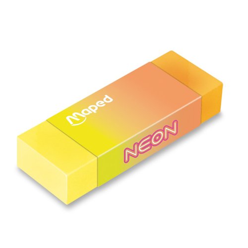 Školní guma s atraktivním designem v neonových barvách na přebalu pro pohodlné a přesné gumování bez znečištění pracovní plochy. Pryž neobsahuje PVC.