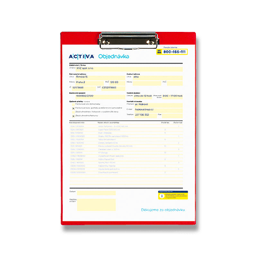 PVC psací podložka s klipem. Extra silná a pevná lepenka 2,5 mm. Rozměr 220 x 323 x 2,5 mm. Na dokumenty A4.