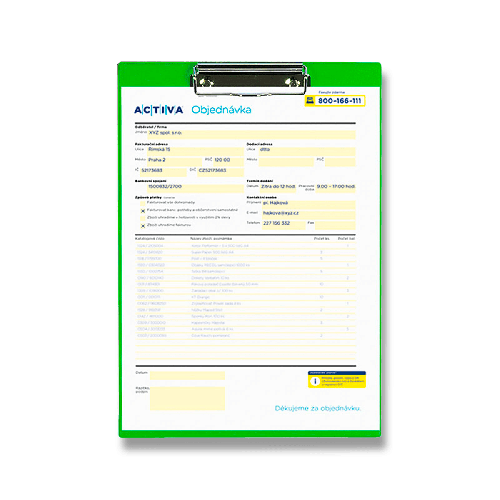 PVC psací podložka s klipem. Extra silná a pevná lepenka 2,5 mm. Rozměr 220 x 323 x 2,5 mm. Na dokumenty A4.