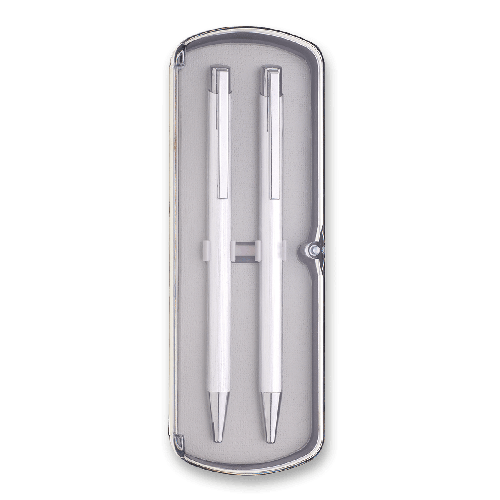 Sada kuličkové pero a mechanická tužka 0,5 mm v dárkovém balení. kovové tělo s jemně rýhovaným povrchem modrá nápln X20 stiskací mechanismus šíře stopy kuličkového pera: 1 mm šíře stopy mechanické tužky: …
