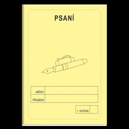 Školní sešit obsahuje předlohu psacích a tiskacích písmen abecedy, řádky oddělené pro lepší orientaci psaní a pomocné linky.