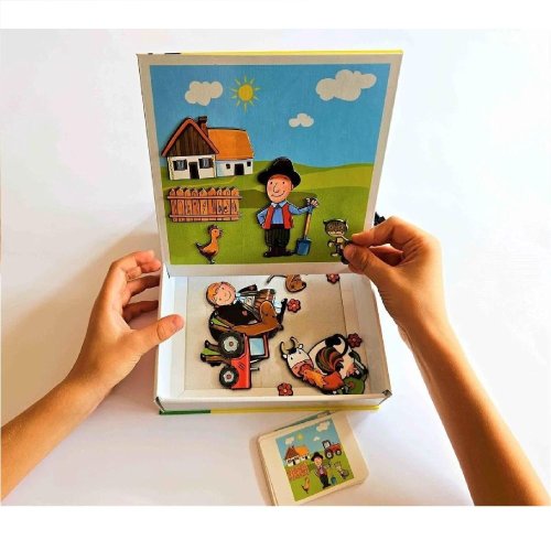 Všestranná hra, která povzbudí děti od 4 do 8 let ke kreativitě, aranžování, kreslení a psaní. Psaní, mazání a skládání magnetických obrázků - vše v jedné sadě. Skvělý trénink psaní písmenek, čísel a spousta volné plochy na malování mazací fixkou a skládání scének z magnetických obrázků... Rozvíjí jemnou motoriku a zručnost, ale také probouzí fantazii a při popisování veselých příběhů zlepšuje vyjadřovací schopnosti a slovní zásobu dětí. Díky magnetům jednotlivé dílky drží na podkladové desce a hra je proto vhodná i na cesty v autě.