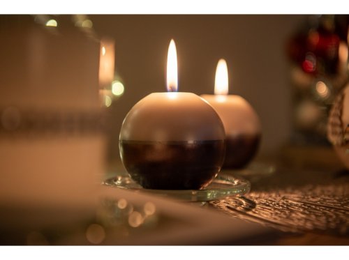 Půlená s páskem Koule 70 mm šedá svíčka