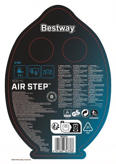 Objevte nožní pumpu Bestway® Air Step™ – dokonalé řešení pro rychlé nafouknutí a vyfouknutí vašich oblíbených nafukovacích předmětů. S velikostí 22,8 x 15,8 x 6 cm a výtlakem 0,8 litru je každé pumpování dětskou hrou. Jednoduchým přemístěním flexibilní hadice můžete snadno přepínat mezi nafukováním a vyfukováním. Tři vyměnitelné adaptéry, které jsou součástí dodávky, umožňují použití Air Step™ k nafukování všech hraček do vody, člunů, kruhů atd. Rozměry balení: 27,5 x 16,5 x 7,5 cm.