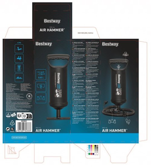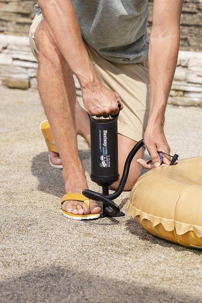 Spojte maximální výkon a efektivitu s pumpou Bestway® Air Hammer™ s dvojitým vratným pístem! S velikostí 30 cm a výtlakem 0,85 litru je navržena pro maximální průchod vzduchu. Nafukování pracuje pohybem nahoru i dolů, což zkracuje celý proces pumpování. Flexibilní 80 cm hadice a 3 různé adaptéry ventilů umožňují použití pumpy na mnoho různých nafukovacích předmětů. Bez ohledu na to, zda máte brouzdaliště, nafukovací matrace, čluny nebo hračky. Air Hammer™ se také snadno přepravuje a skladuje. Výška produktu: 30 cm. Rozměry balení: 30,5 x 11 x 9 cm.