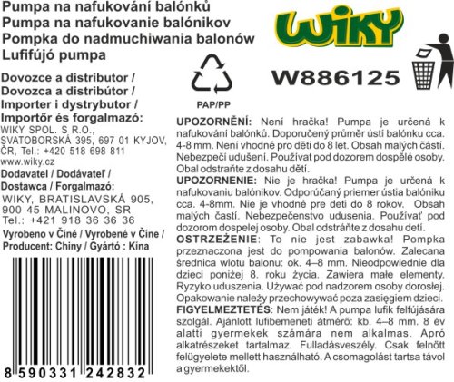 Barevná pumpička na balónek Rozměry: délka 30 cm průměr pumpy 5 cm průměr náústku 0,7-3 cm