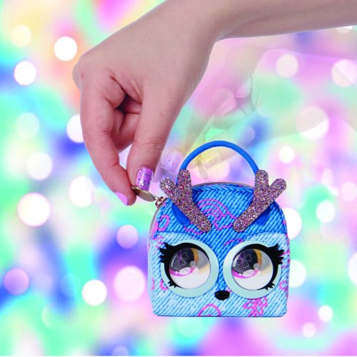 Stylová mikro kabelka v podobě Srnky má oči, které se otáčejí při otevírání a zavírání zipem. Vyrobeno z prémiových materiálů a textur. Velikost cca 8x8x5 cm. V jedné ze šesti mikrokabelek najdeš unikátní značkovou gumičku do vlasů. Vhodné od 5 let.