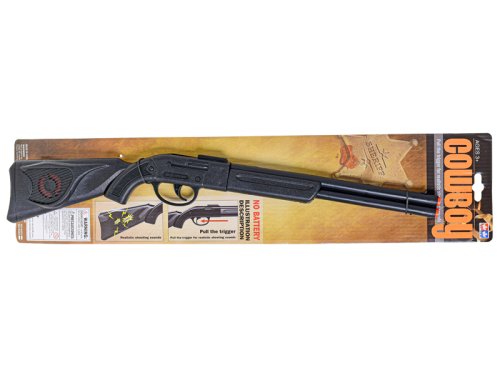 Život kovboje je snem spousty chlapců. S touto puškou se svému snu lehce přiblíží. Pistole z plastu pro všechny malé pistolníky a kovboje. Puška vydává klapací zvuk, na mechanickém principu, po stisknutí spouště. Baleno na kartě. Tato zbraň vypadá jako opravdová. Jedná se ale o bezpečnou dětskou hračku.