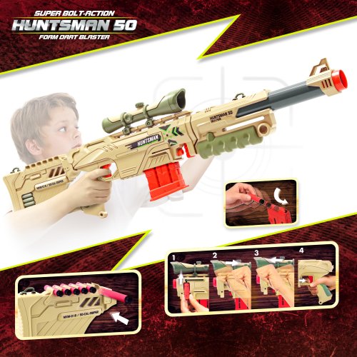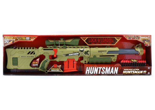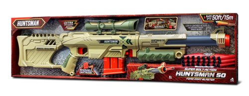 Největší zbraň kolekce Huntsman - Sniper Blaster umožňuje snadno sejmout prodloužení hlavně, pažbu i zaměřovač a proměnit tak tohoto skvěle vypadajícího dalekonosného obra na šikovnou ruční zbraň na …