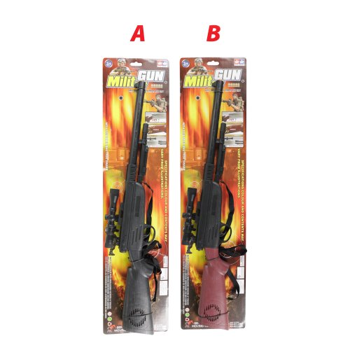 Senzační vojenská puška nesmí ve tvé sbírce chybět! Po stisknutí spouště vydává puška zvuk. Puška je dlouhá cca 68 cm. Senzace!