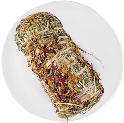 Witte Molen PUUR – skutečný požitek z ryzích přírodních chutí a vůní. PUUR pauze hay roll flowers & herbs je lahodná rolka ze sena, s květy a bylinkami. 100% přírodní zábavný pamlsek pro býložravé drobné savce. Králíci, morčata, činčily a osmáci si nejen pochutnají na voňavém seně, okvětních lístcích ibišku a lístcích máty, ale zároveň rozplétáním rolky zaženou nudu. Pamlsek stimuluje přirozený hlodací instinkt a podporuje tak zdraví zubů. Navíc obsažená hrubá vláknina přispívá k správnému fungování trávení. Vyrobeno v Holandsku ve společnosti Witte Molen s tradicí od roku 1740. Složení: Vedlejší produkty rostlinného původu (90 % seno, 2 % ibišek, 2 % okvětní lístky růží, 2 % máta, měsíček lékařský, kopřiva).