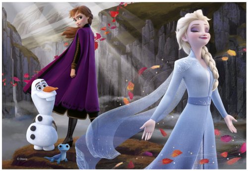 Dětské puzzle obsahující 2 obrázky s různými motivy po 77 dílcích. Rozměr motivu: 26,4 x 18,1 cm.