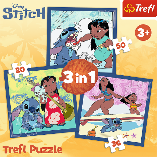 3 puzzle v 1 balení – obsahují 20, 36 a 50 dílků.
