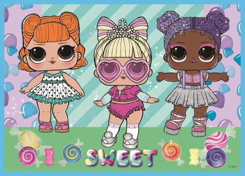 Dětské puzzle TREFL s obrázky panenek. Progresivní puzzle s různou obtížností - 4 puzzle s 35 - 70 dílky. Rozměr složeného puzzle cca 28,5 x 20,5 cm