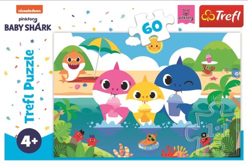 Puzzle 60 dílků s veselými žraloky. Velikost složeného obrázku je 33 x 22 cm. Puzzle je vyrobeno z vysoce kvalitního papíru, který je potažený ekologickými barvami. Rozměr krabičky: 21 x 14 x 4 cm. Vhodné pro děti od 3 let