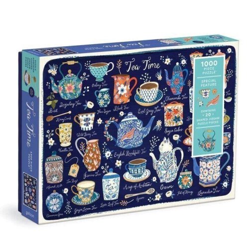 Puzzle obsahuje řadu prvků pro přípravu čaje, jako jsou čajové konvice, podšálky a lžičky. Toto puzzle obsahuje i 20 speciálně tvarovaných dílků. Puzzle je baleno v pevné krabici, pro opětovné použití a skladování. Ideální jako dárek. Autorem obrázku je Christine de Carvahlo.Rozměry balení: 29,2 x 21,6 x 5,1 cmRozměr puzzle: 68,6 x 50,8 cmVěk: 8+Materiál: recyklovaný papír a kartonPočet dílků: 1000 ks